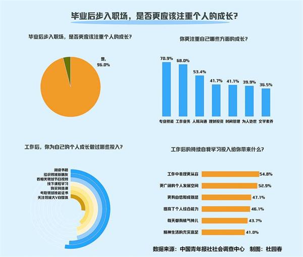 调查发现,96.0%的受访职场青年认同,毕业后步入职场,更应该注重个人成长。