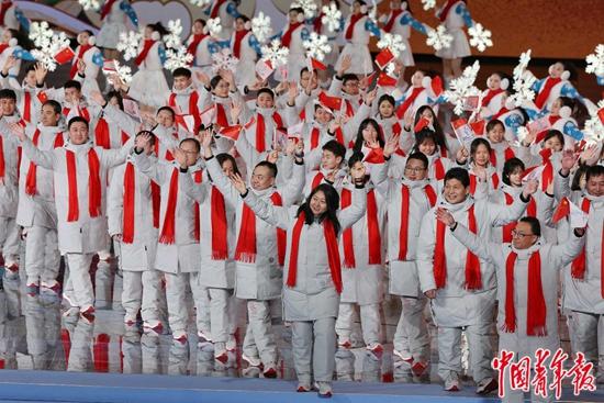 2月17日,内蒙古呼伦贝尔,第十四届全国冬季运动会开幕式上,东道主内蒙古代表团入场。中青报·中青网记者 曲俊燕/摄