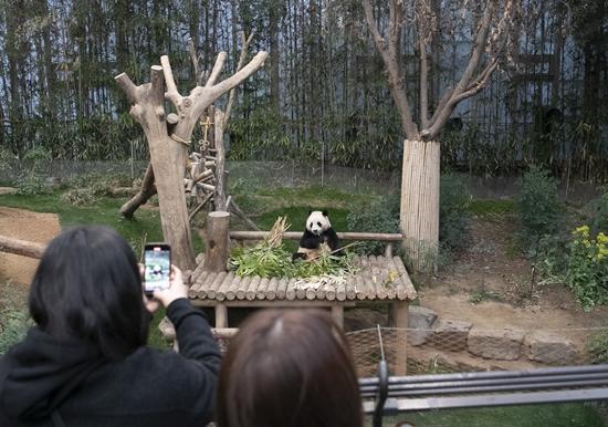 2月20日,韩国民众在韩国爱宝乐园参观大熊猫福宝。