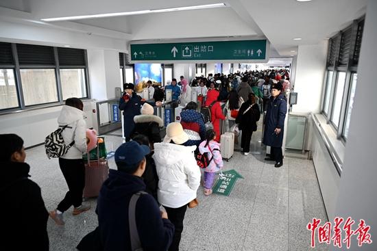 “这是车站独有的进出站方式。”王洪向记者介绍,自开站以来,镇江关站平均客流量是车站可聚集最多旅客人数的10倍,列车基本趟趟满员。2月1日至4日,车站在每日开行动车组3对的情况下又动态增开了2对动车,客流量再次迎来小高峰。而车站生产作业人员仅有10名,客运运行压力巨大。因此,为疏散候车旅客,车站实行提前2个小时检票机制,将连廊、天桥改造为候车厅。