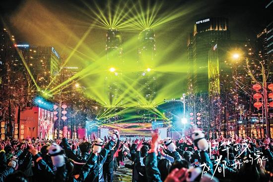 从2月23日至25日,成都高新区“风华正茂,成都我的家”龙年元宵节主题活动在交子大道精彩呈现,绚丽震撼的光影秀、精美绝伦的汉服巡游、奇趣好玩的游园会、好吃好逛的市集、十万人齐唱《成都》、千名蓉漂舞动青春等活动轮番上演,充满了年轻感、活力感、时尚感,展示了扎根成都高新区的青年人才们的奋进风采。