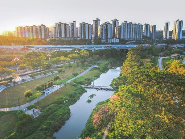20多公里的沿河碧道串联起口袋公园、桥下空间、河滨湿地,曾经无人问津的小河,成了兼顾生活和生态双重功能的亲水空间。人们安心地亲水游玩、白鹭在浅滩驻足、绿植被滋养得发亮、河畔边的异木棉在夕阳的照耀下粉得惊艳……