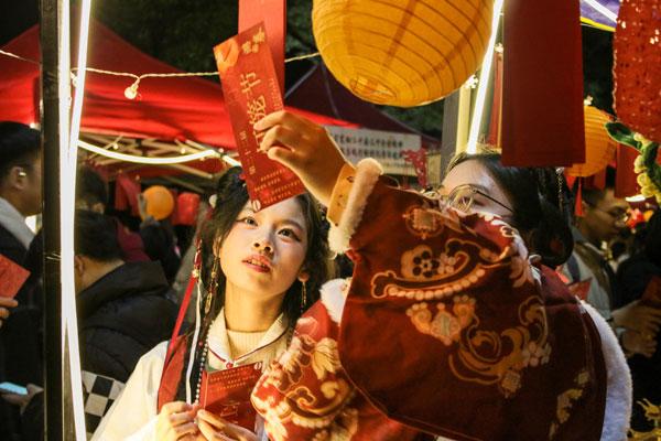 近日,合肥工业大学学生亲手设计制作的350余盏创意灯笼点亮了校园。夜幕降临,繁灯如昼、交相辉映,各类灯谜雅致新奇;青年学子身着汉服衣裾蹁跹、簪笄挽髻,手擎非遗鱼灯而游,“飞花令”“投壶”等趣味项目同步开展。传统文化之美与青春之梦绘成一幅流动画卷。