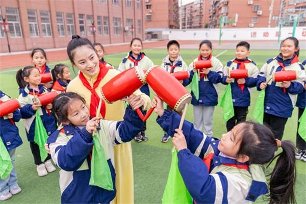 12月10日,江苏南通,海安市教师发展中心附属小学的孩子们在老师的指导下学习非遗“海安花鼓”。近年来,该校将省级非遗项目“海安花鼓”作为学生体育教学和学校社团的专题项目,既丰富了学校体育教学的形式,又传承了本地优秀非遗文化。 翟伟凯/视觉中国