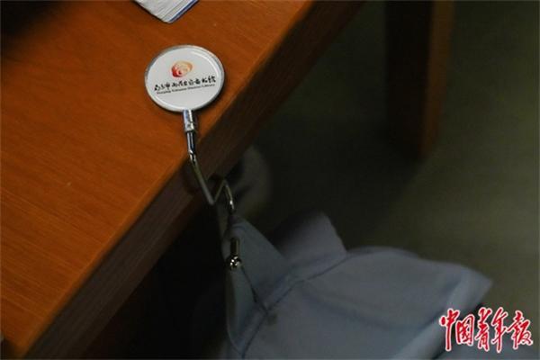 有读者建议,地板再干净,放书包也不合适,挂起来最好。馆员试了各种尺寸、材质、款式的挂钩。后来,有个上初中的小读者,从家里带来一种不会损坏桌面的轻便挂钩,图书馆就对照着定制了一批。