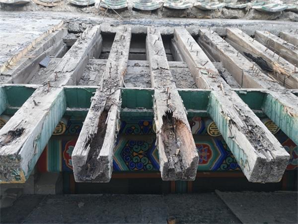 协和医学院建筑整体外观是中国传统宫殿的样貌,但主体采用了当时新兴的混凝土和钢筋材料。史玉龙介绍,长度约1.8米的檐头部位是传统的实木结构,它们与主体的混凝土结构仅靠一个约11厘米的凹槽连接。然而,历经百年风雨,檐头木结构和混凝土结构的衔接处,由于“头重脚轻”导致檐头倾折。此次修缮,对该薄弱环节利用钢制扁带连接进行加固处理,但依旧保持了原有的整体建筑形式和受力方式。