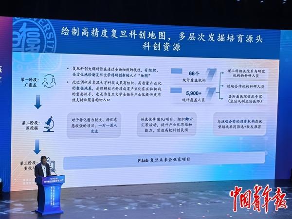 为此,复旦大学在当天的大会上宣布成立复旦科技成果转化创业赋能项目(以下简称“F-LAB项目”)。据悉,F-LAB项目将加强原创性、颠覆性科学研究和技术与产业应用的深度融合,重点从复旦科学家与校友中发掘高潜力人才和高质量项目,通过课程赋能、陪伴辅导、要素匹配、投资孵化等“一站式”服务,培育一批由复旦科创生态全链条赋能的科技成果转化明星项目,孵化具有品牌效应和复旦标签的知名科创公司。