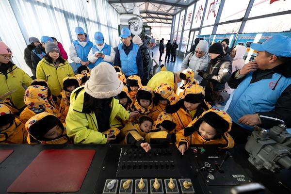 当日,23名来自广西的“小砂糖橘”来到中国铁路哈尔滨局集团有限公司哈尔滨机务段,开启铁路探秘之旅。他们参观“朱德号”机车,收获卡通版“驾驶证”;走进哈机段史文化教育展室,了解红色文化和机车文化;走进实训练功场,体验火车驾驶乐趣。新华社记者 张涛/摄