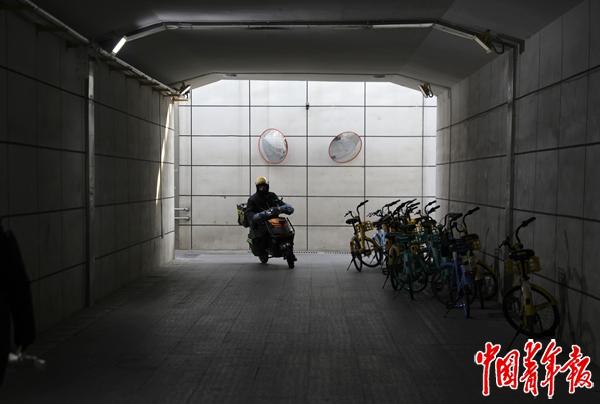 1月14日,位于北京东四环外的姚家园南路下穿京包铁路的通道里,外卖小哥小张正骑行在送单路上。这条去年年初启用的下穿通道,帮助他更快捷地穿梭于铁路东西两侧的目的地之间,通道上方,一列高铁列车正经过,往北面不远处的北京朝阳站驶去。