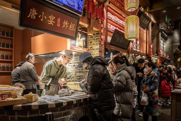 徐小文认为,河头老街之所以会吸引越来越多的外地游客,首先是因为园区深度挖掘了“两唐文化”,“有文化的东西才有传播力”;其次是场景化的特色小吃格外容易戳中消费者的“心靶”;互动式的演绎更能为游客提供情绪价值;最后还有暖心的服务,景区“爱心驿站”为寒冬里的游客免费提供保暖贴及黑糖桂圆枣茶、胎菊枸杞茶、山楂陈皮玫瑰茶等热饮,还提供免费的食品加热服务和常用的医疗用品、应急救援等。