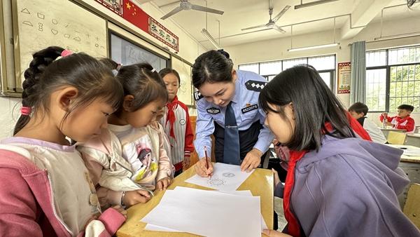 2023年10月9日,我参加广西壮族自治区监狱系统组织的“百警进校园 千警结对留守儿童”活动,前往单位帮扶点——广西罗城仫佬族自治县小长安镇合北小学,给孩子们上绘画课,由此认识了覃洁。当时,她还是合北小学六年级的学生。