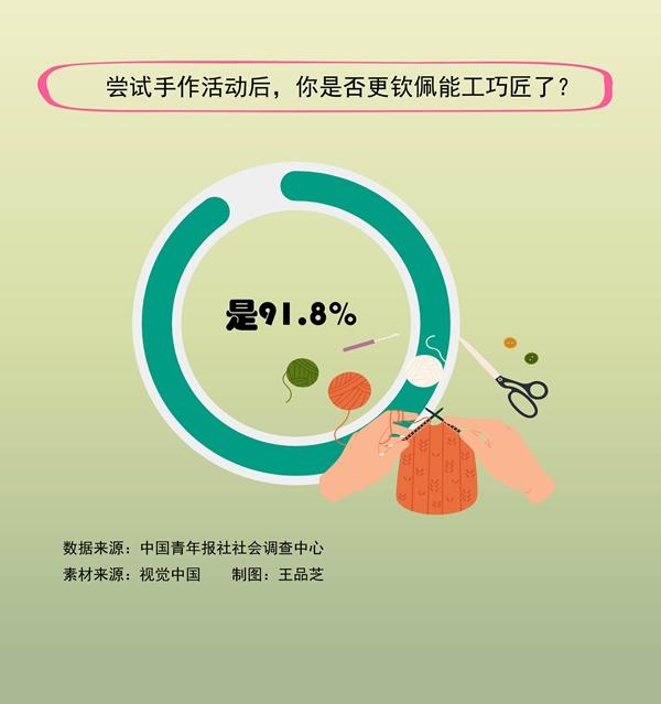 调查显示,尝试手作活动后,91.8%的受访者更钦佩能工巧匠了。