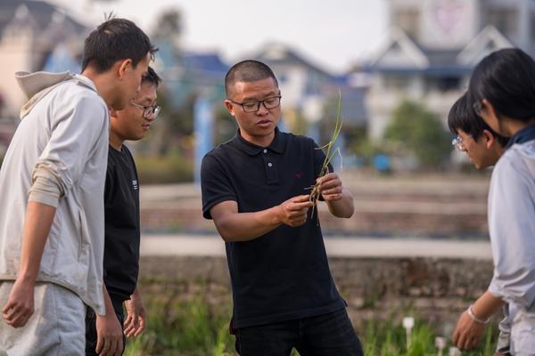 2月27日,青年教师黄光福(中)在试验田间给学生授课。 今年37岁的黄光福是云南大学农学院的一名青年教师,同时也是云南大学在云南省勐海县勐遮镇曼恩村成立的多年生稻科技小院的负责人。多年来,他带领学生扎根田间,进行技术攻关,让“割韭菜般收稻子”的农业成果从实验室走向田间地头。彭奕凯/摄(新华社发)