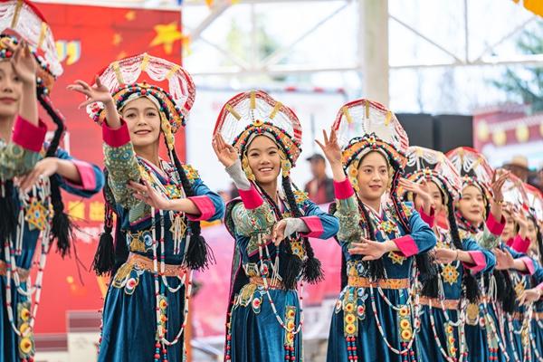 3月28日,人们在拉萨市宗角禄康公园内载歌载舞,庆祝西藏百万农奴解放66周年。