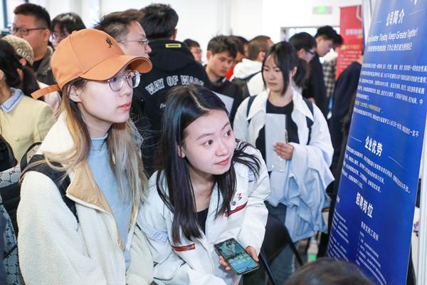 4月1日,“2025年京津冀高校毕业生春季大型双选会”现场,求职者在了解企业招聘活动。当日,由北京市教委、天津市教委、河北省教育厅主办的“2025年京津冀高校毕业生春季大型双选会”在北京高校大学生就业创业指导中心举办。本次双选会吸引京津冀三地200余家重点企业参会,涵盖高端制造、人工智能、生物医药等20余个行业,累计提供3000余个岗位,2000余名高校毕业生参加。中青报·中青网记者 张渺/文 吕天翔/摄