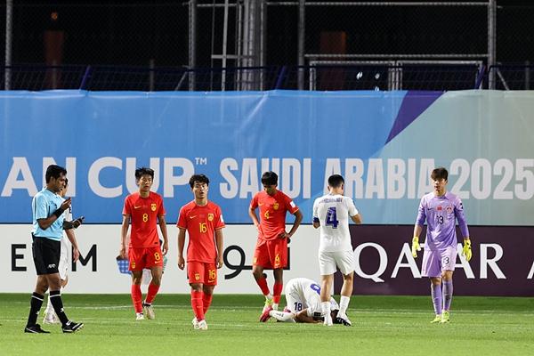 中国球迷本对国字号球队“首轮遭遇战、次轮生死战、末轮荣誉之战”、小组赛提前出局之洲际赛事流程并不陌生,只是这一届U17国足(2008年龄段球员)2024年10月征战预选赛时,曾在大连普湾主场2∶2战平韩国U17队,从而以3胜1平的不败战绩出线,一度被球迷寄予振兴厚望。尤其本届杯赛分组抽签,U17国足避开日韩伊澳,出线难度略有下降。然而进入决赛圈的U17国足与去年相比判若两队,无论首战沙特还是次战乌兹别克斯坦,球队进攻乏力,防线更是数次犯错漏人,场面罕见顺畅组织与有效控制。日籍主教练上村健一在接受采访时提到的战术设想,并不能在实战当中得到完整呈现。4月10日凌晨,A组最后一轮较量,U17国少对阵同样提前出局的泰国U17队,这场“荣誉之战”的实际意义,也只在于避免全败收官。