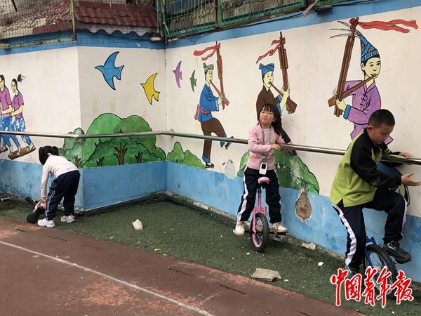 踩着高跷的孩子从身边跑过,操场上到处是骑着独轮车的孩子,这不是游乐场,而是一所小学。