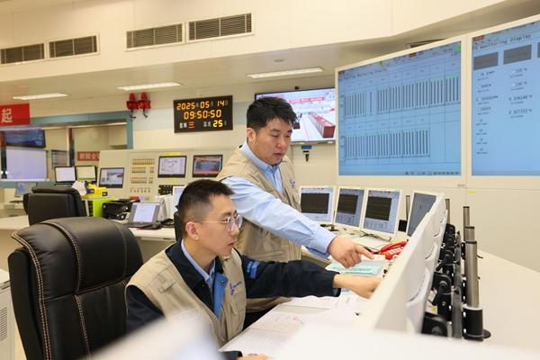 5月14日,“华龙一号”全球首堆主控室工作人员在岗位值守。 当日,我国自主三代核电“华龙一号”全球首堆——中核集团福清核电5号机组实现连续安全稳定运行1000天,持续向社会稳定输送清洁电力超370亿度。2015年,“华龙一号”全球首堆落户福建福清开工建设。 福建福清核电有限公司供图(新华社发)