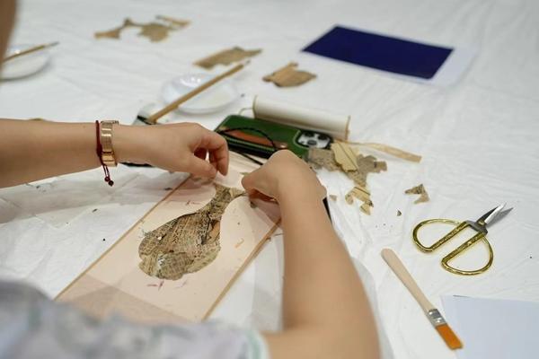 李思琪介绍,针对一些“几个月后就会撤掉”的特展开发课程,或许没有办法重复开课,但“老活新作”团队不想让游客“错过精彩内容”。在“古典的回响——溪客旧庐藏明清文人绘画展”期间,夜校配合开设了书画装裱课程,通过讲解让学员理解装裱自身也有审美逻辑,再去完成一件“锦灰堆”作品。这是一种起源于元朝的艺术形式,用书画残片构成新画面。课程结束后,有学员觉得过程“很疗愈”,几个小时没有碰手机,焦虑情绪得到了放松。
