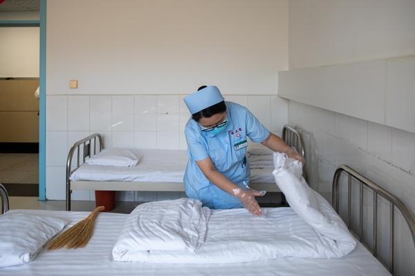 北安院区精神科设置了9个病区,有护理人员140名,收治患者400余人,主要收治精神分裂症、双相情感障碍、抑郁症、躁狂症、焦虑症、酒精戒断综合征等精神疾病患者。在这里,患者通常被称为“工休人员”,医院会定期召开“工休座谈”,让患者家属提出病房管理意见。医院分封闭病区和开放病区,封闭病区按照性别分配住院,按病情严重程度及是否会相互影响来分配床位。症状严重的,还需暂住隔离病房,待平稳后再进普通病房。有的病号在病房生活久了,和医护人员有了深厚感情。