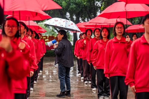 5月27日,张桂梅拿着新的小喇叭,陪伴学生们做课间操。当日,一场简短的捐赠仪式在云南丽江华坪女子高中举行,“七一勋章”获得者、云南丽江华坪女高校长张桂梅收到了国家博物馆颁发的收藏证书,她日常使用的小喇叭等5件(套)见证着华坪女高办学历程的实物被国家博物馆正式收藏。新华社记者 胡超/摄