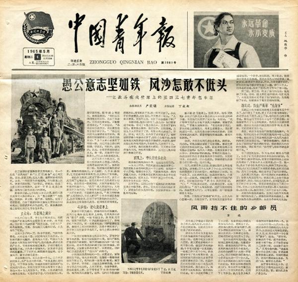 1965年5月4日,刊发在《中国青年报》头版上的一篇文章——《愚公意志坚如铁 风沙怎敢不低头》,让更多人熟悉了战斗在戈壁滩上的西北铁路工程局5437青年包车组9个年轻人的故事。