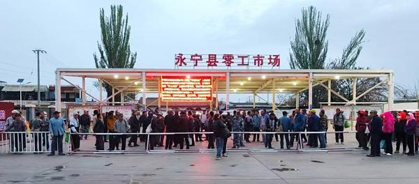 “以前‘蹲马路’风吹日晒;现在有了洽谈区,安全敞亮,还供应热水。”50岁的马卫国经常在永宁县零工市场寻找产品包装和装修的零工活儿。4月上旬,他在零工市场的现场洽谈区找到一份15天工期的“好差事”,为小区修整草坪、修补路沿石,日薪200元。