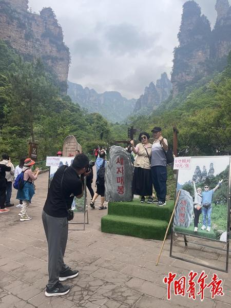 “在韩国,几乎人人知晓张家界。”在韩国开旅行社的郑俊男介绍,韩国人喜欢爬山,张家界独有的峰林吸引他们。韩国人来张家界便宜且便利,3000元团费,3小时直飞,享受一场5天4晚的旅行。