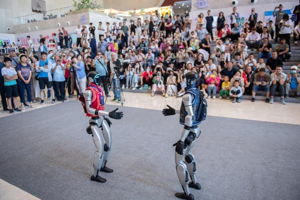 6月20日,智能导览机器人在内蒙古博物院表演节目。