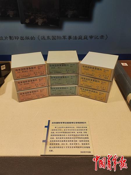 民国文献,是缩微中心正在努力的工作对象。中青报·中青网记者在展览现场看到一组“远东国际军事法庭庭审记录缩微胶片”。这是2011年,经多方努力,国家图书馆从国外购回的近5万页东京审判庭审记录缩微文献。