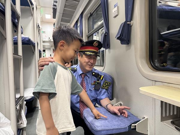 中国铁路呼和浩特局集团有限公司包头客运段K691次乘务人员近日开展“童萌服务”,针对儿童旅客的特点和需求,提供全方位的服务。康楠/摄影报道