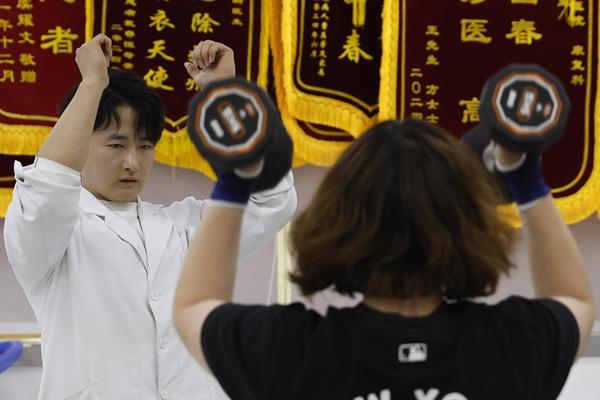 4月2日晚,上海市黄浦区打浦桥街道社区卫生服务中心健康管理(减重)门诊,治疗师在指导市民进行肌肉力量训练。视觉中国供图