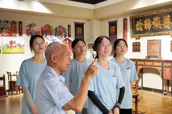 江西科技学院文化与传媒学院门匾三韵实践队近日赴江西省赣州市上犹县,开展暑期“大思政”社会实践活动。队员们探访非物质文化遗产“上犹客家门匾习俗”代表性传承人吕泽庆与门匾制作技艺第三代传承人温锦意,学习了解客家人迁徙繁衍、慎终追远和敬宗睦族的历史,体悟传承的艰辛与荣光。李晗 陈雨熙/摄影报道
