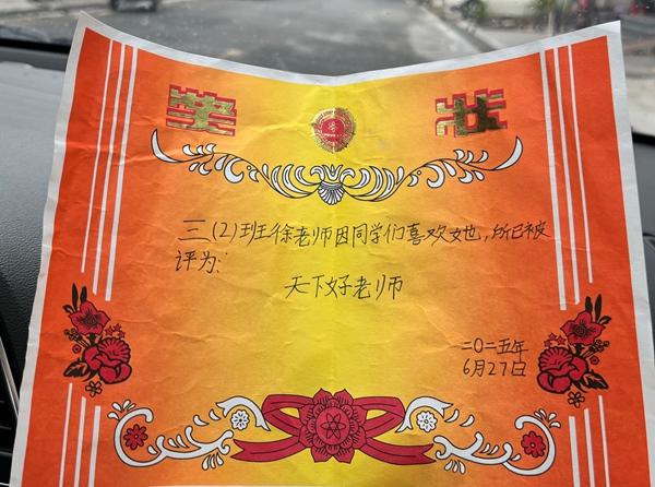 7月,贵州省松桃苗族自治县的气温逐渐攀升,在大坪场镇完小的一间教室里,黑板正中央的国旗画得有些歪斜,周围的彩色粉笔字挤得密密麻麻:“徐老师不要走。”班长小屈站在讲台上,双手捧着一张手绘奖状,上面写着:“徐老师因同学们喜欢她,所以被评为天下好老师。”这是三(2)班的孩子为一位支教老师准备的告别礼物。