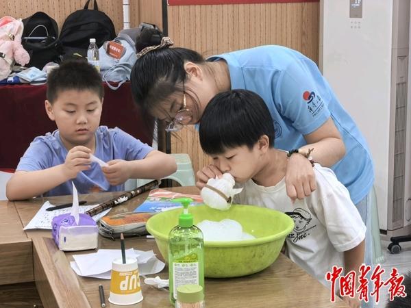 刘静珊说,为了让每个孩子都能融入课堂,志愿者设计了手工课、绘画课等全员参与的课程,让大家在动手协作中找到归属感。而对于相对抽象的航天知识或英文单词,志愿者引导孩子们在角色扮演中熟悉英文表达,或是把单词编成儿歌,大家边唱边记。“我们的陪伴,是让他们能像其他孩子一样,有地方撒欢、有人教他们念诗画画,不用担心‘爸爸妈妈下班陪我们会不会太累’。”
