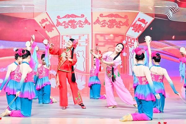 2025年1月23日,湖南卫视春晚直播。在开场舞《春禧》表演中,来自全国各地的多个国家级非遗项目同台亮相。其中,凤阳花鼓跟随欢快明朗的节奏,刚柔相济、活泼俏皮,展现出独特韵味。演出后,各地演员争相学习凤阳花鼓技艺,后台瞬间变身非遗流动课堂。