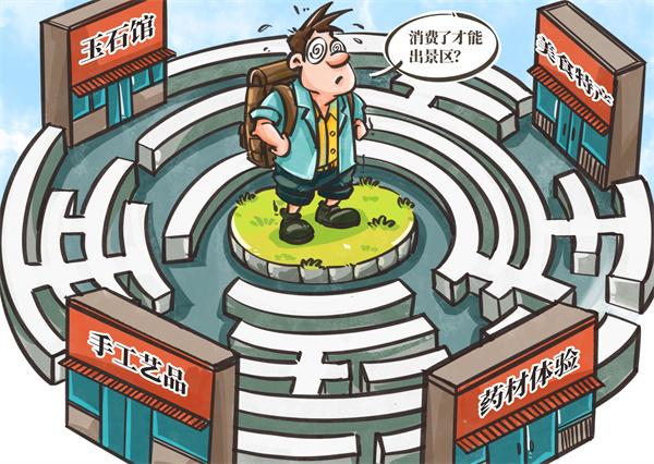 国庆中秋长假带动旅游市场热度攀升,各地纷纷推出个性化旅游产品。然而,如今不少景区在出口处必设购物点,购物几乎成了“出园必经之路”。与此同时,部分经营者将文化与消费强行捆绑,导致景区原有的文化吸引力被削弱,沦为购物的附庸。这种伪文化包装不仅损害了旅游的纯粹性和游客的体验感,从长远来看也不利于旅游市场的可持续发展。漫画:程璨