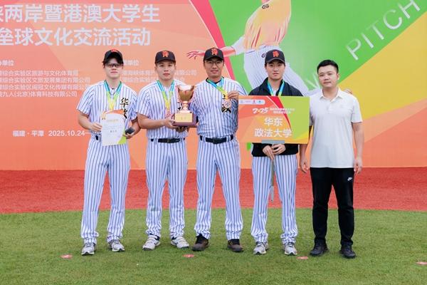当一颗垒球以优美的弧线从空中滑落,胸前写有“华政”二字的一名年轻人双脚分开站立,炯炯的眼睛紧盯着飞速靠近的小球,他双手紧握球棒蓄势待发。随着清脆响亮的打击声响起,那颗银球如离弦之箭般飞向远处。这一杰作正出自本次比赛的本垒打单项技能冠军——华东政法大学棒球队队长云永腾之手。