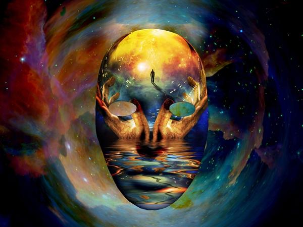 “大他者”的光流碎片飘浮在空气中,帮助人们“调整光谱”,接着人们在无数个屏幕上重生。
