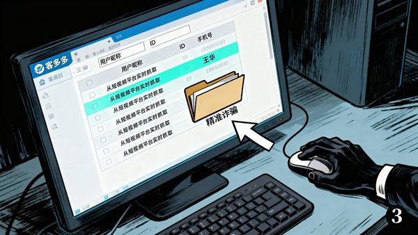 警方追查发现,这背后是一款名为“客多多”的“暴力获客”软件在暗中运作。它可以突破短视频平台的安全防护机制,实时抓取直播间观众的昵称、ID、粉丝数、性别、手机号、所在城市、唯一身份识别码等隐私信息,然后精准推销广告,甚至实施诈骗。
