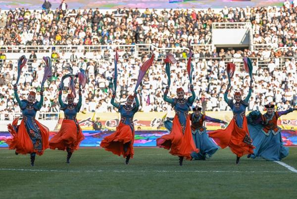 安代舞、科尔沁民歌、好来宝、乌力格尔,属于草原的文化被搬到了足球场。把球场当舞台,这是通辽赛区策划人、通辽市球类运动中心主任董海鹏一早就有的思路,他让赛场上的担架员换上“博克服(摔跤手服装)”,网上才有了关于“蒙超”踢得“生猛”的段子。