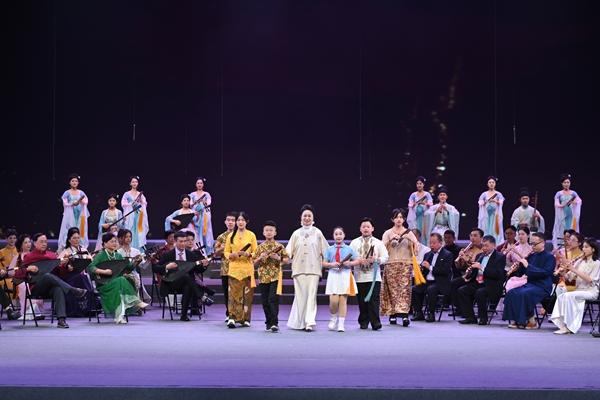 12月10日,南音社团代表及中小学生在“南音薪传 四海弦歌”专场演出上表演。当日,第十五届泉州国际南音大会唱启动仪式暨“南音薪传 四海弦歌”专场演出在泉州举行。本届南音大会唱汇聚海内外42支南音社团、超600名演职人员同台献艺,共同唱响“中国音乐活化石”的古韵新声。新华社记者 姜克红/摄
