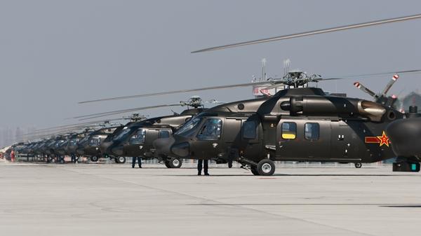 近日,豫中大地,寒风呼啸。陆军某旅机场内,多种机型依次升空,在完成悬停、增速和转弯等多个动作后,向着目标区域呼啸而去。