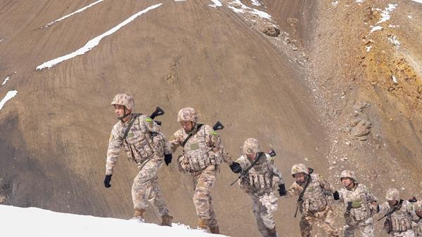 前往点位的途中需攀爬一座海拔5800多米的雪山,这里坡度近70度,官兵每向上爬一步,脚尖就会顺着碎石往下滑两步。最险处,大家需要手脚并用才能稳住身体往上爬。雪深风急,巡逻在这条形似“刀背”的路上,官兵们常常将自己戏称为“刀尖上的舞者”。