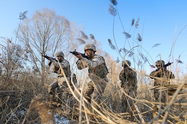 1月4日,武警山西总队忻州支队官兵开展山林地捕歼战斗演练。新年伊始,全军部队新年度军事训练拉开帷幕。连日来,全军官兵掀起练兵备战热潮,磨砺血性胆气、练就过硬本领。徐佳润/摄(新华社发)