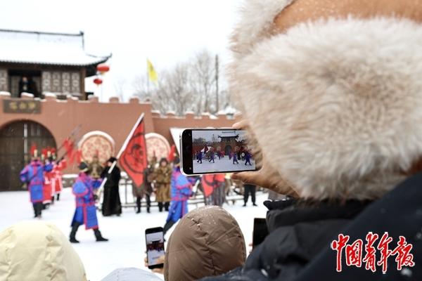 1月12日,黑龙江镜泊湖景区,演员正在表演。中青报·中青网记者 杨雷/摄