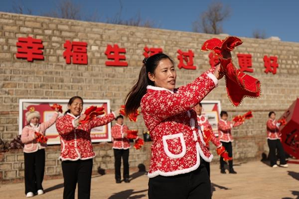 1月20日,村民在祝家沟村家文化广场练习舞蹈。