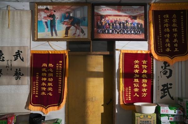 这样的越野跑是白鹤江13年前成立这家中国式摔跤武馆时就定下的训练课目。不论四季,每周一次。孩子们按年龄分组,分别跑4-8公里不等,为的是训练肺活量和耐力,为良好的身体打下“地基”。从庄稼地旁的土路到宽阔的柏油马路,孩子们奔跑的路线跨越乡村与城市,正在修建的雄忻高铁紧邻,不远处是近几年新出现的产业园高楼。