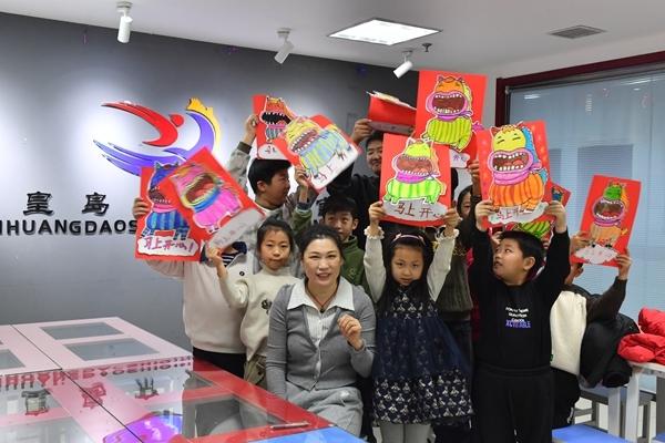 图为河北省秦皇岛市青少年宫开展的寒假公益托管班上,青少年在展示课上绘制的美术作品。团秦皇岛市委供图