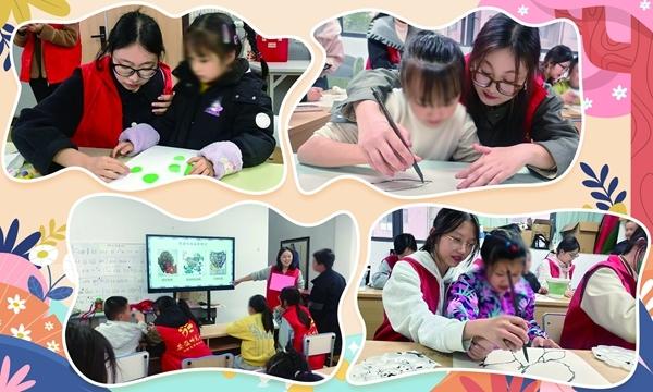该校一名二年级女生因画不好美术作品,常常急得掉泪,与人交流也小心翼翼。志愿者老师没有否定她,反而不停夸赞其作品的色彩、形状优点。在美术创作的正向反馈中,女孩逐渐敢主动举手发言,还常笑着和同学分享画作。美术创作的成就感,成为她建立自信的重要支撑。
